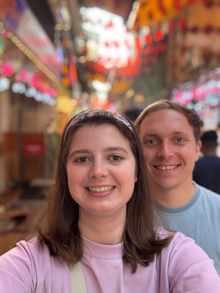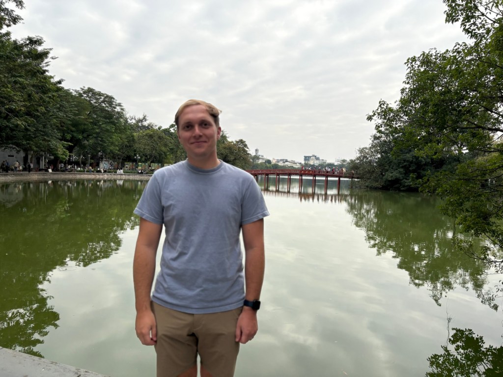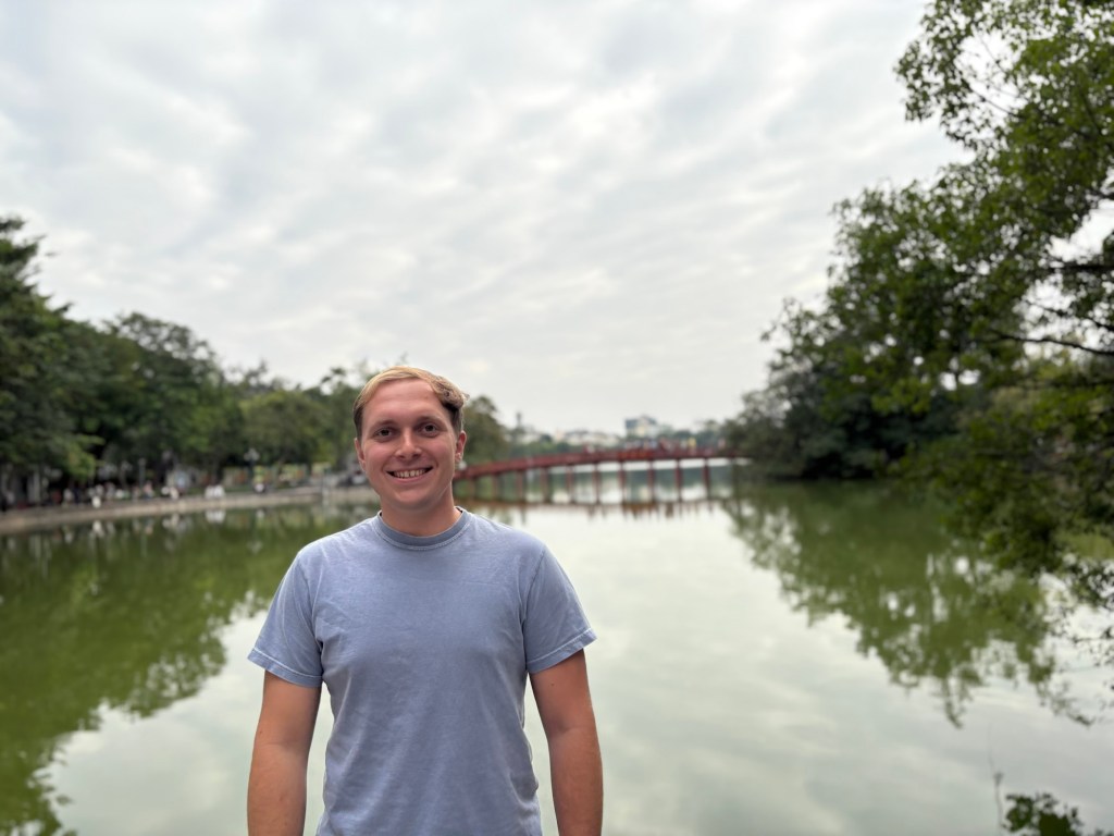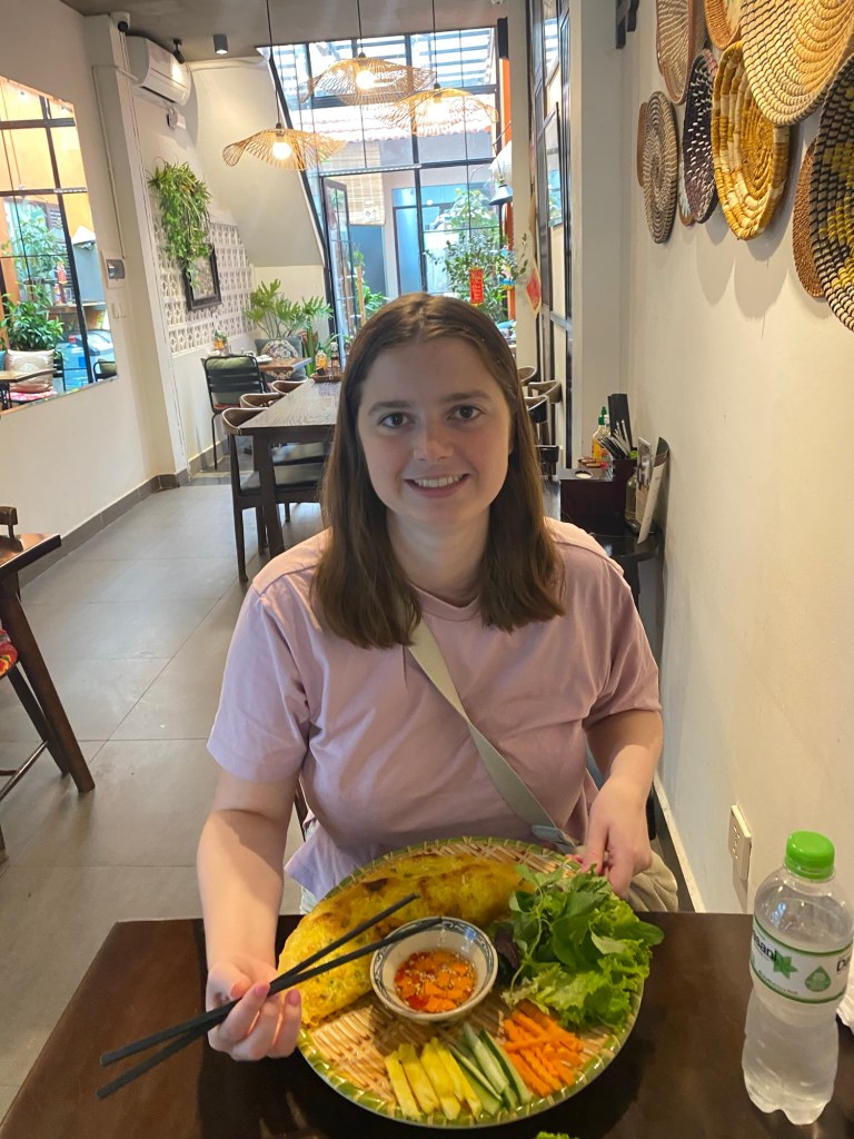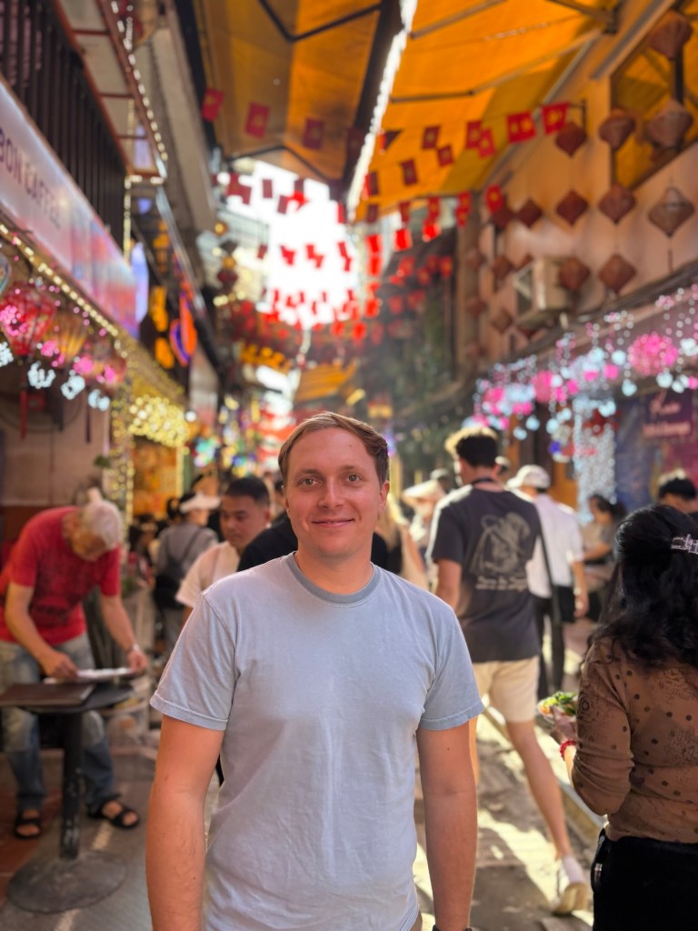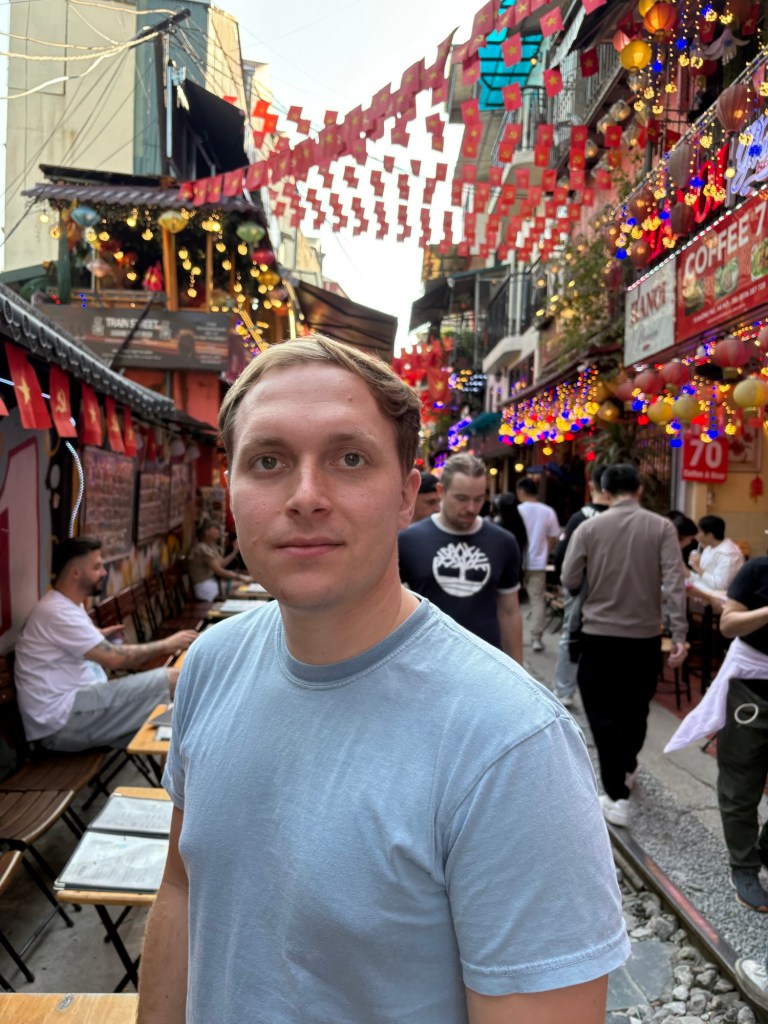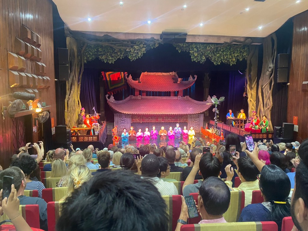 Bryson and I really liked the vibes of Hanoi. On our first day we wandered through the old quarter and around Hoan Kiem Lake, where the streets were closed off so families could hang out and kids could run wild. A bunch of children came up to us to practice their English, which we were happy to do. In the evening locals did Zumba classes, played badminton and danced on the pavements. It seemed like the whole city had come together to celebrate and socialise. That day was also the first time we tried Vietnamese pancakes, a dish that quickly became Bryson’s favourite. During our two weeks in Hanoi we continuously came back to the old town and lake, going on long walks, visiting shops and eating delicious food. We also visited Hanoi’s famous Train Street (we were eating bun cha when a train roared past just microns away from us) and the Temple of literature (where students pray for good grades). One evening we watched a traditional puppet show. I really enjoyed watching the puppets dance through water, but Bryson fell asleep within minutes. We also celebrated my birthday in Hanoi. Bryson took me to an incredible rooftop bar overlooking the whole city. It was literally the same view you see on google images when you search for Hanoi. Aside from exploring the city we spent a lot of time in our local mall (lotte west lake) and playing Skyrim (our new favourite game). If anything was truly terrifying in Hanoi, it was the roads. Traffic lights were completely ignored and crossing the road involved walking out into the swarm of traffic and hoping they would swerve past you. Being a taxi passenger was not much better as our drivers zigzagged all over the place. Thankfully our Airbnb provided some calm among the chaos. We had an amazing view of the city, which somehow even extended into the bathroom with no walls. Overall, we had a blast in Hanoi and definitely would go back.